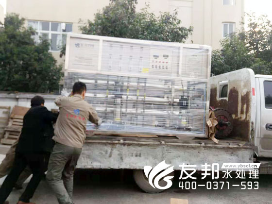 2018-11-02 鄭州友邦正在裝車(chē)是這套每小時(shí)出水2噸的純凈水設(shè)備,發(fā)往開(kāi)封電器有限公司。